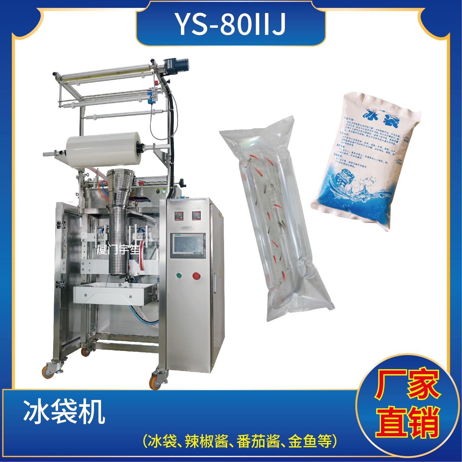 YS- 80IIBJ 冰袋機特 點 1、適用于食品、醫(yī)藥、化工、化妝品行業(yè)中顆粒、粉劑、液體、醬料等物品的計量包裝。2、可自動完成制袋、計量、下料、封合、分切、計數(shù),可根據(jù)客戶要求配置打印批號等功能。3、觸摸屏操作,PLC控制,伺服電機控制袋長,性能穩(wěn)定、調(diào)整方便、檢測準確。智能式溫控儀,PID調(diào)節(jié),保證將溫度的誤差控制…